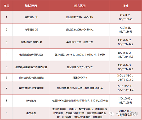 微測汽車電子測試項目、范圍及標準
